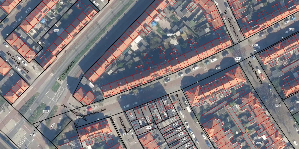 Het perceel waarop Geraniumstraat 51 staat heeft een oppervlakte van 4283 m². Dit is een zeer groot perceel. De perceeloppervlakte wordt geregistreerd door het Kadaster. Gedetailleerde informatie over de maten van dit perceel kunt u vinden in het rapport Kadastrale kaart met maatvoering van Geraniumstraat 51.
