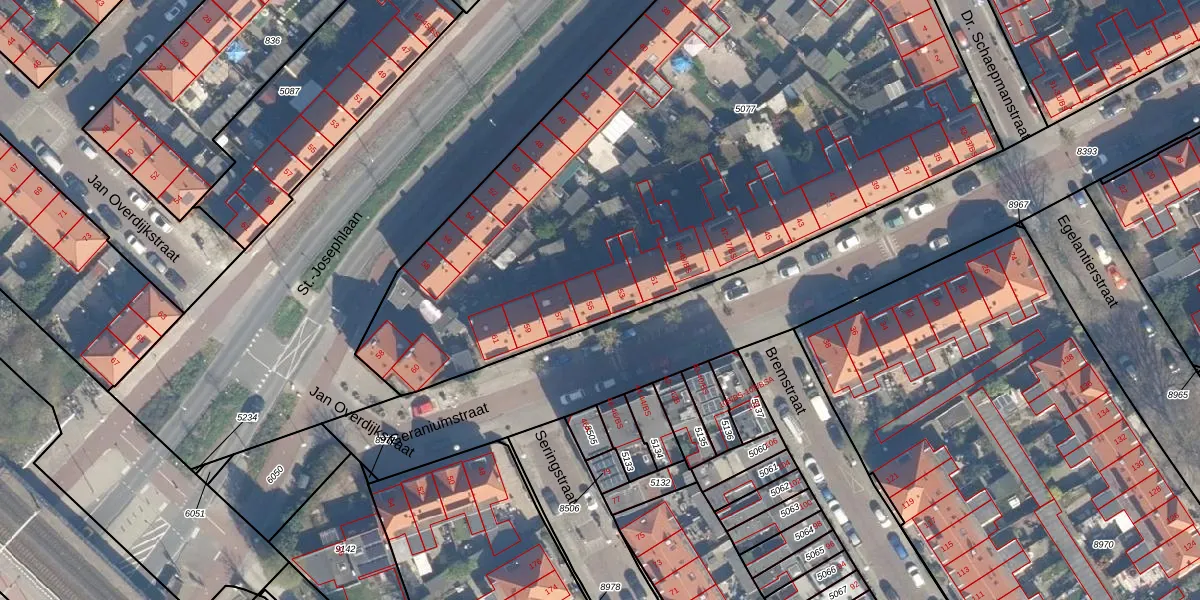 Het perceel waarop Geraniumstraat 55 staat heeft een oppervlakte van 4283 m². Dit is een zeer groot perceel. De perceeloppervlakte wordt geregistreerd door het Kadaster. Gedetailleerde informatie over de maten van dit perceel kunt u vinden in het rapport Kadastrale kaart met maatvoering van Geraniumstraat 55.