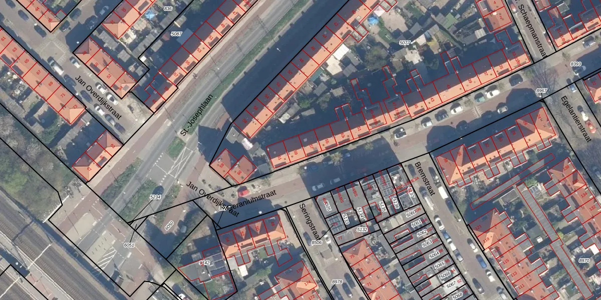 Het perceel waarop Geraniumstraat 59 staat heeft een oppervlakte van 4283 m². Dit is een zeer groot perceel. De perceeloppervlakte wordt geregistreerd door het Kadaster. Gedetailleerde informatie over de maten van dit perceel kunt u vinden in het rapport Kadastrale kaart met maatvoering van Geraniumstraat 59.