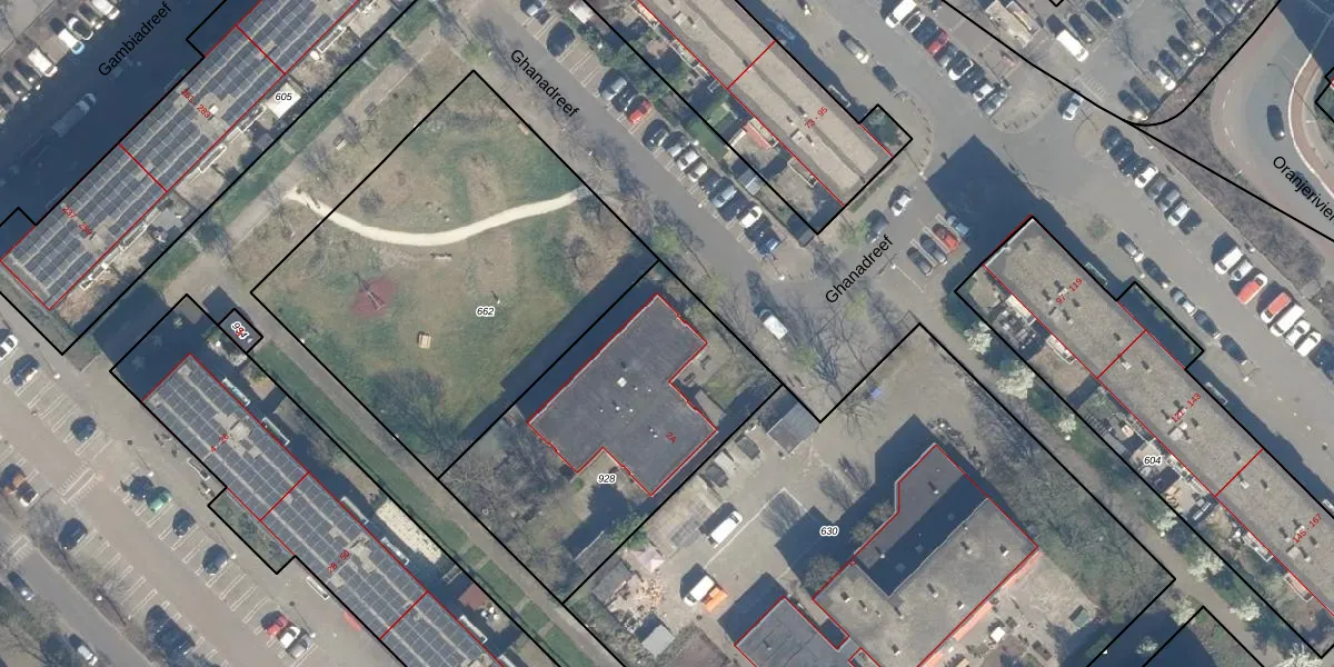 Het perceel waarop Ghanadreef 2-A staat heeft een oppervlakte van 1222 m². Dit is een zeer groot perceel. De perceeloppervlakte wordt geregistreerd door het Kadaster. Gedetailleerde informatie over de maten van dit perceel kunt u vinden in het rapport Kadastrale kaart met maatvoering van Ghanadreef 2-A.