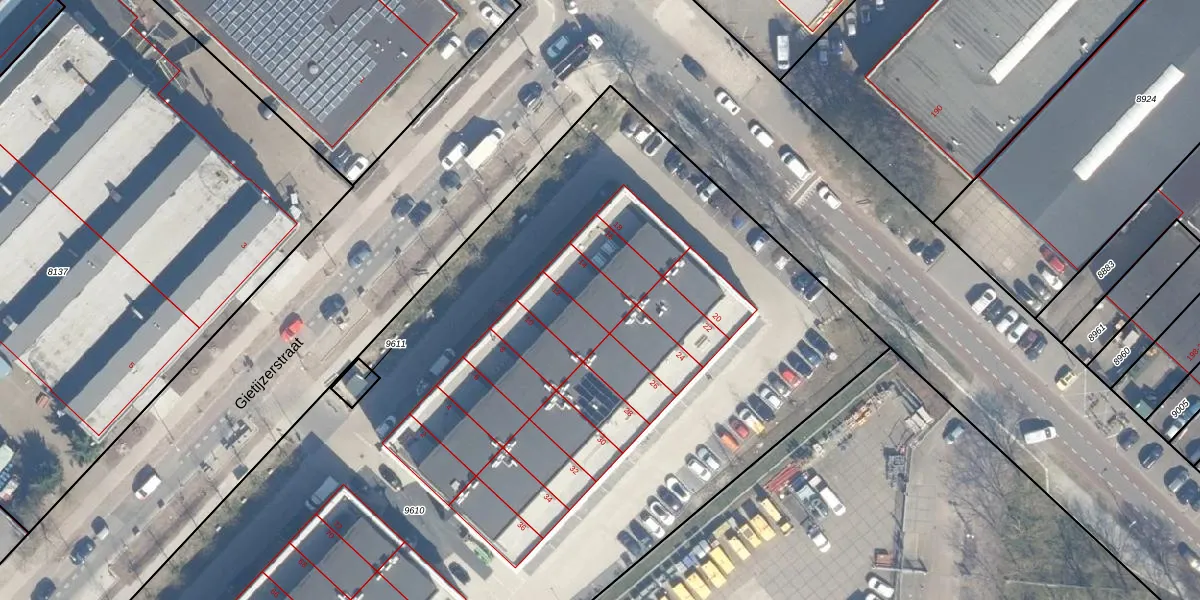 Het perceel waarop Gietijzerstraat 14 staat heeft een oppervlakte van 9062 m². Dit is een zeer groot perceel. De perceeloppervlakte wordt geregistreerd door het Kadaster. Gedetailleerde informatie over de maten van dit perceel kunt u vinden in het rapport Kadastrale kaart met maatvoering van Gietijzerstraat 14.