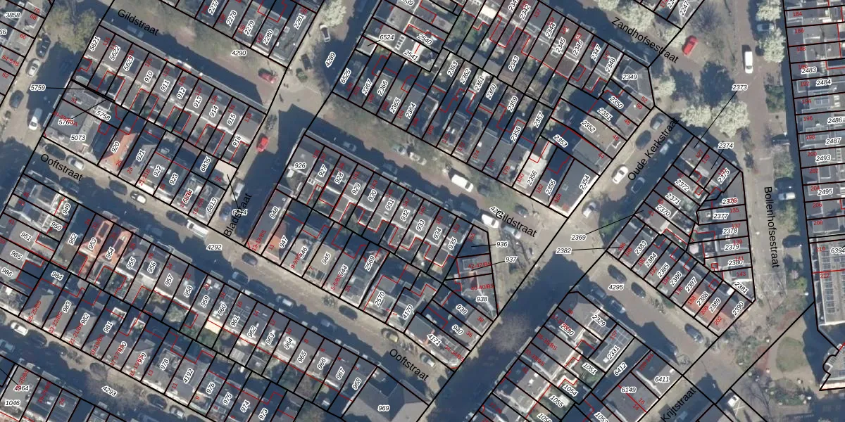 Gebruik de zoekbalk of klik op een perceel voor informatie over de adressen binnen dit perceel.