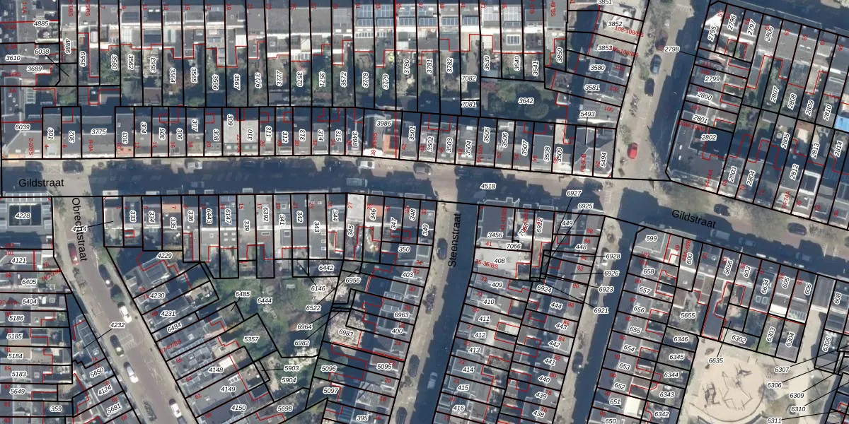 Gildstraat 35 is gelegen op kadastraal perceel ASD40B349. Deze kadastrale aanduiding is uniek en wordt gebruikt door het Kadaster om eigendomsrechten en andere zakelijke rechten vast te leggen. Het perceel maakt onderdeel uit van de kadastrale gemeente Abstede.