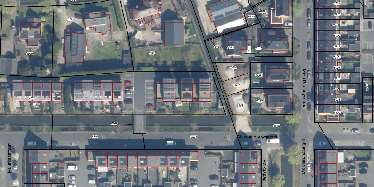 Glastuinbouwsingel 45 is gelegen op kadastraal perceel UTT00V4767. Deze kadastrale aanduiding is uniek en wordt gebruikt door het Kadaster om eigendomsrechten en andere zakelijke rechten vast te leggen. Het perceel maakt onderdeel uit van de kadastrale gemeente Utrecht.