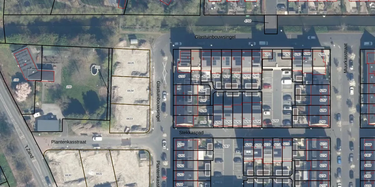 Glastuinbouwsingel 6 is gelegen op kadastraal perceel UTT00V6246. Deze kadastrale aanduiding is uniek en wordt gebruikt door het Kadaster om eigendomsrechten en andere zakelijke rechten vast te leggen. Het perceel maakt onderdeel uit van de kadastrale gemeente Utrecht.