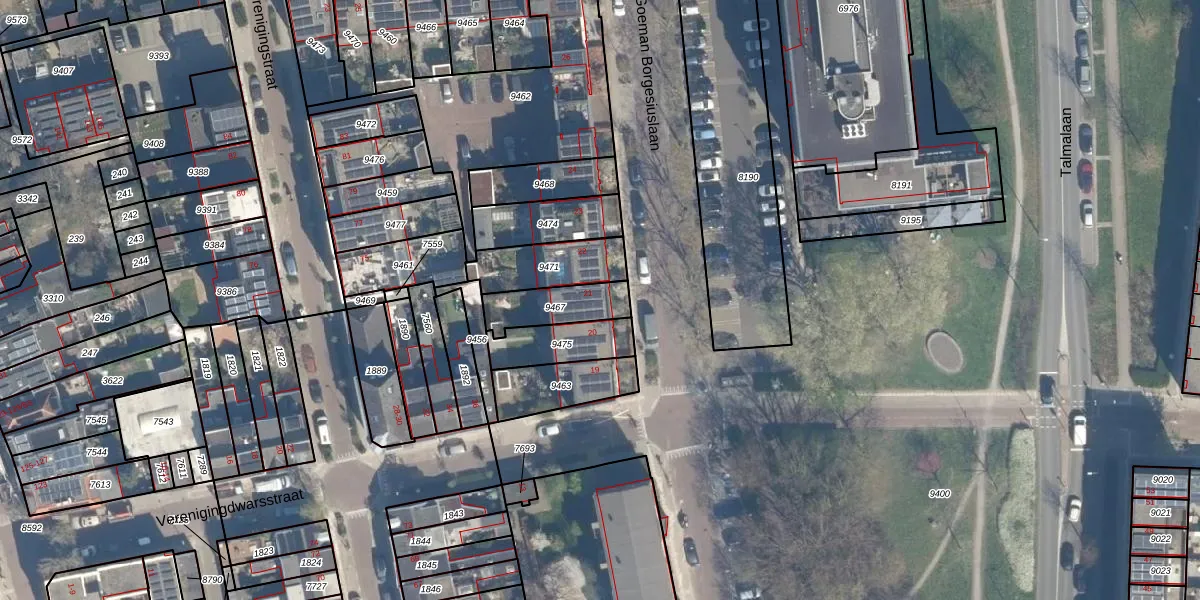 Gebruik de zoekbalk of klik op een perceel voor informatie over de adressen binnen dit perceel.