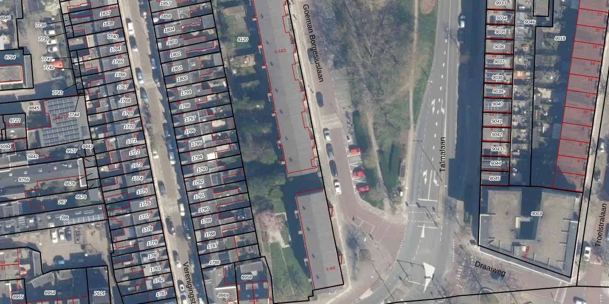 Het perceel waarop Goeman Borgesiuslaan 5-1 staat heeft een oppervlakte van 4040 m². Dit is een zeer groot perceel. De perceeloppervlakte wordt geregistreerd door het Kadaster. Gedetailleerde informatie over de maten van dit perceel kunt u vinden in het rapport Kadastrale kaart met maatvoering van Goeman Borgesiuslaan 5-1.