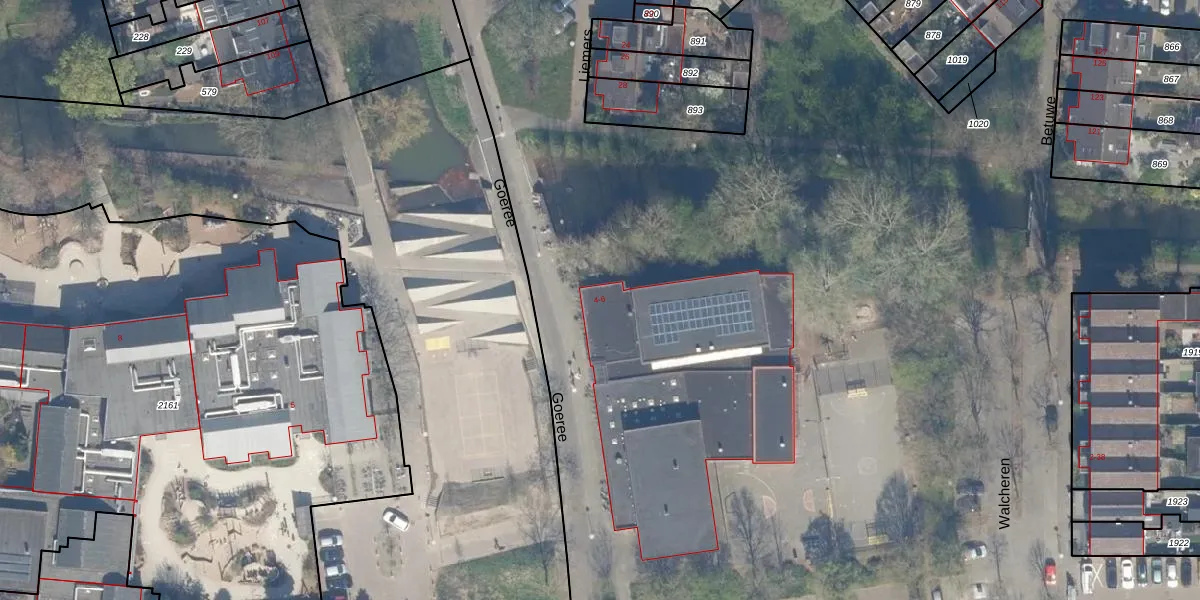 Het perceel waarop Goeree 6 staat heeft een oppervlakte van 4,5 ha. Dit is een zeer groot perceel. De perceeloppervlakte wordt geregistreerd door het Kadaster. Gedetailleerde informatie over de maten van dit perceel kunt u vinden in het rapport Kadastrale kaart met maatvoering van Goeree 6.