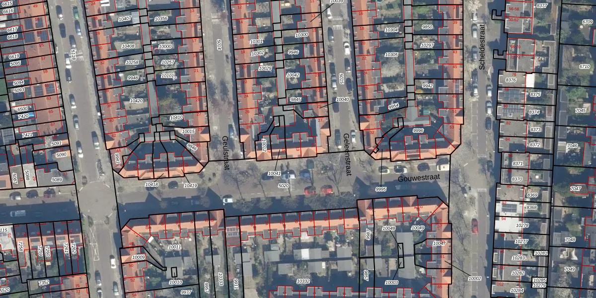 Gouwestraat 13 is gelegen op kadastraal perceel CTR00D10042. Deze kadastrale aanduiding is uniek en wordt gebruikt door het Kadaster om eigendomsrechten en andere zakelijke rechten vast te leggen. Het perceel maakt onderdeel uit van de kadastrale gemeente Catharijne.