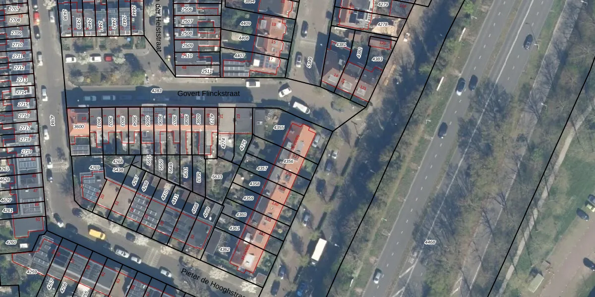 Het perceel waarop Govert Flinckstraat 25 staat heeft een oppervlakte van 304 m². Dit is een groot perceel. De perceeloppervlakte wordt geregistreerd door het Kadaster. Gedetailleerde informatie over de maten van dit perceel kunt u vinden in het rapport Kadastrale kaart met maatvoering van Govert Flinckstraat 25.