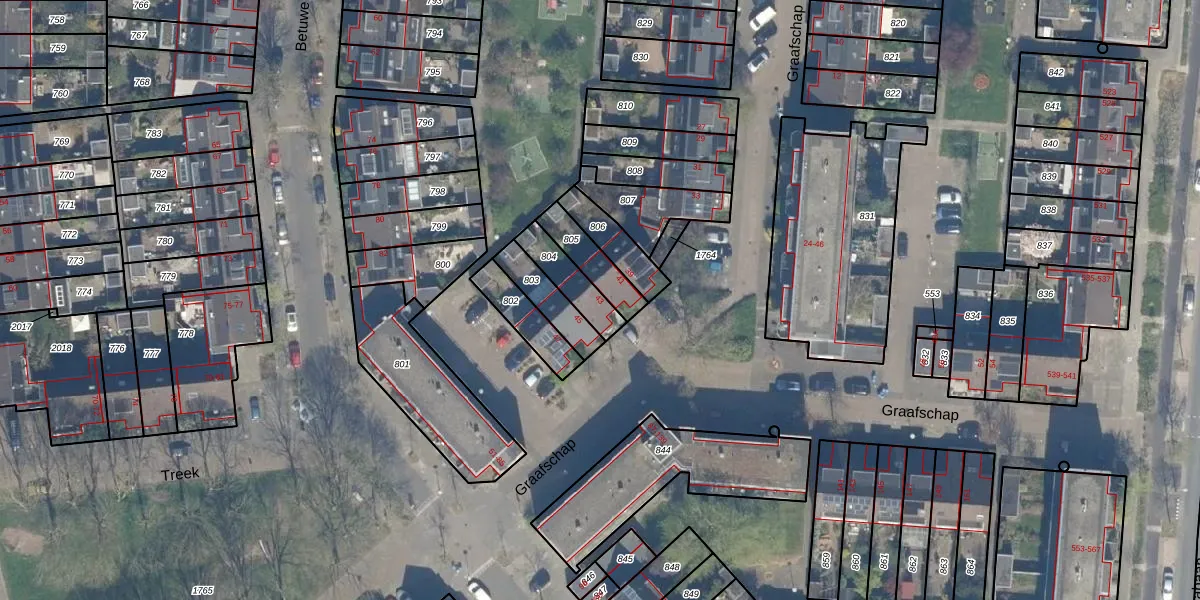 Gebruik de zoekbalk of klik op een perceel voor informatie over de adressen binnen dit perceel.