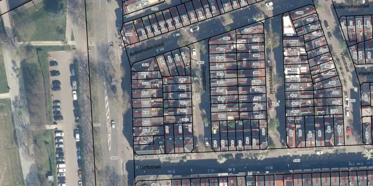 Het perceel waarop Graanstraat 10 staat heeft een oppervlakte van 64 m². Dit is een klein perceel. De perceeloppervlakte wordt geregistreerd door het Kadaster. Gedetailleerde informatie over de maten van dit perceel kunt u vinden in het rapport Kadastrale kaart met maatvoering van Graanstraat 10.