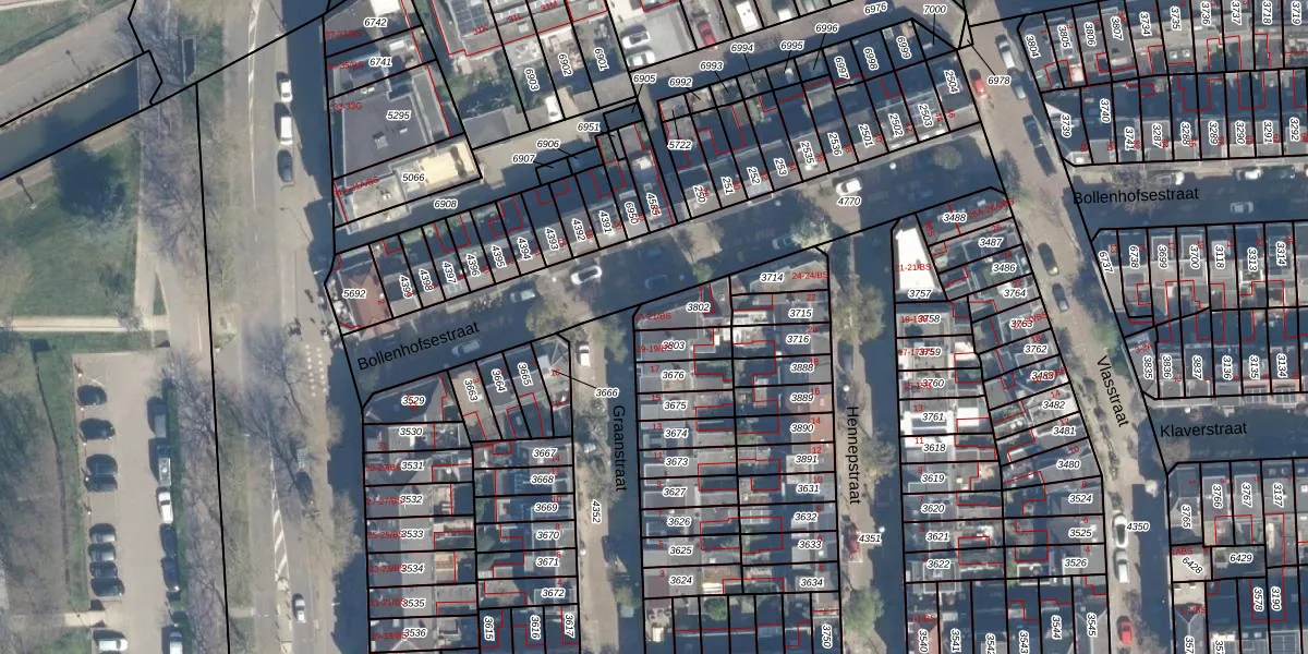 Het perceel waarop Graanstraat 21 staat heeft een oppervlakte van 85 m². Dit is een klein perceel. De perceeloppervlakte wordt geregistreerd door het Kadaster. Gedetailleerde informatie over de maten van dit perceel kunt u vinden in het rapport Kadastrale kaart met maatvoering van Graanstraat 21.