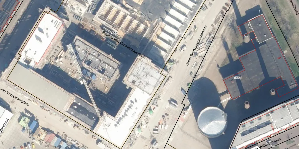 Het perceel waarop Greet Brinkhuispromenade 13 staat heeft een oppervlakte van 1,1 ha. Dit is een zeer groot perceel. De perceeloppervlakte wordt geregistreerd door het Kadaster. Gedetailleerde informatie over de maten van dit perceel kunt u vinden in het rapport Kadastrale kaart met maatvoering van Greet Brinkhuispromenade 13.