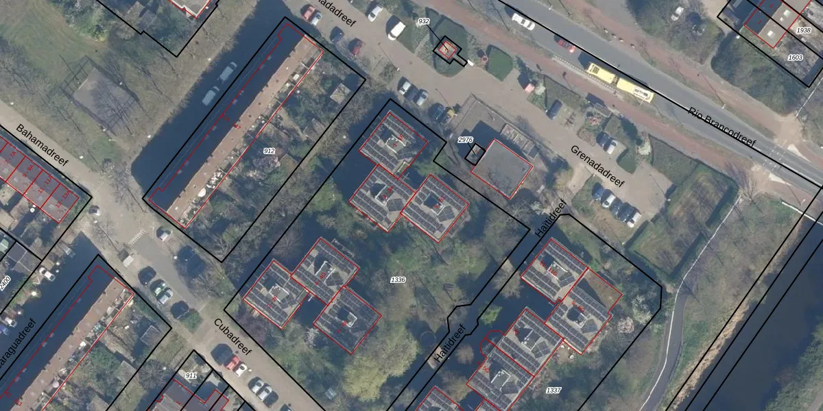 Het perceel waarop Grenadadreef 5-F staat heeft een oppervlakte van 3010 m². Dit is een zeer groot perceel. De perceeloppervlakte wordt geregistreerd door het Kadaster. Gedetailleerde informatie over de maten van dit perceel kunt u vinden in het rapport Kadastrale kaart met maatvoering van Grenadadreef 5-F.
