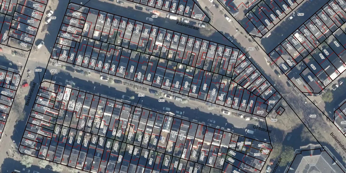 Gebruik de zoekbalk of klik op een perceel voor informatie over de adressen binnen dit perceel.