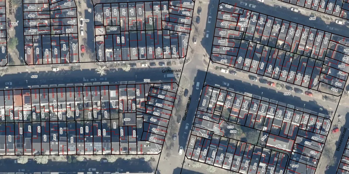 Griftstraat 55 is gelegen op kadastraal perceel ASD40B7002. Deze kadastrale aanduiding is uniek en wordt gebruikt door het Kadaster om eigendomsrechten en andere zakelijke rechten vast te leggen. Het perceel maakt onderdeel uit van de kadastrale gemeente Abstede.