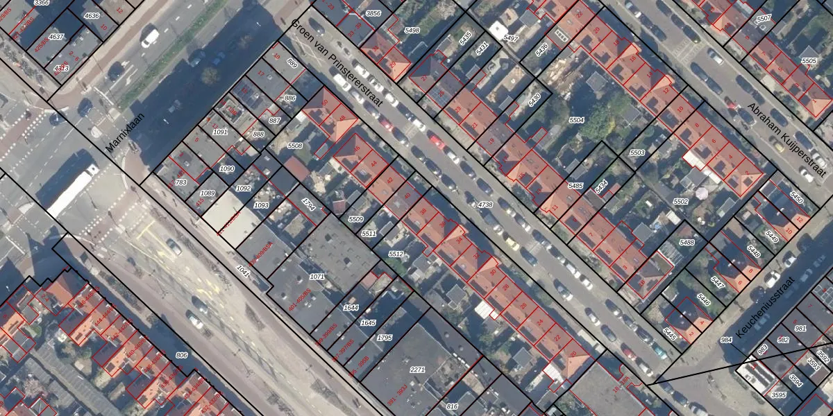 Het perceel waarop Groen van Prinstererstraat 38 staat heeft een oppervlakte van 1224 m². Dit is een zeer groot perceel. De perceeloppervlakte wordt geregistreerd door het Kadaster. Gedetailleerde informatie over de maten van dit perceel kunt u vinden in het rapport Kadastrale kaart met maatvoering van Groen van Prinstererstraat 38.