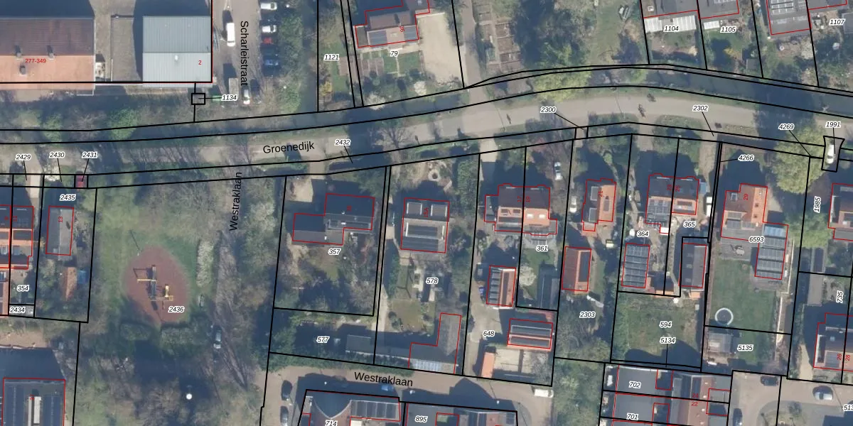 Gebruik de zoekbalk of klik op een perceel voor informatie over de adressen binnen dit perceel.