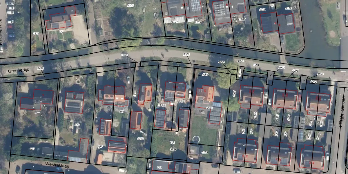 Het perceel waarop Groenedijk 23 staat heeft een oppervlakte van 405 m². Dit is een groot perceel. De perceeloppervlakte wordt geregistreerd door het Kadaster. Gedetailleerde informatie over de maten van dit perceel kunt u vinden in het rapport Kadastrale kaart met maatvoering van Groenedijk 23.