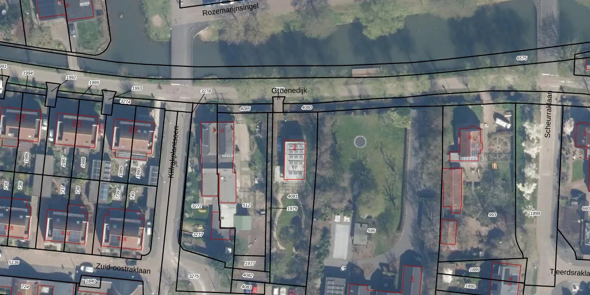 Groenedijk 33-B is gelegen op kadastraal perceel UTT00V4081. Deze kadastrale aanduiding is uniek en wordt gebruikt door het Kadaster om eigendomsrechten en andere zakelijke rechten vast te leggen. Het perceel maakt onderdeel uit van de kadastrale gemeente Utrecht.
