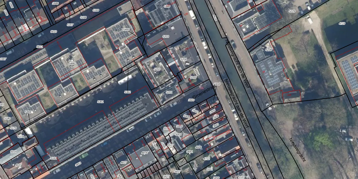 Groenestraat 100 is gelegen op kadastraal perceel UTT00B5201. Deze kadastrale aanduiding is uniek en wordt gebruikt door het Kadaster om eigendomsrechten en andere zakelijke rechten vast te leggen. Het perceel maakt onderdeel uit van de kadastrale gemeente Utrecht.