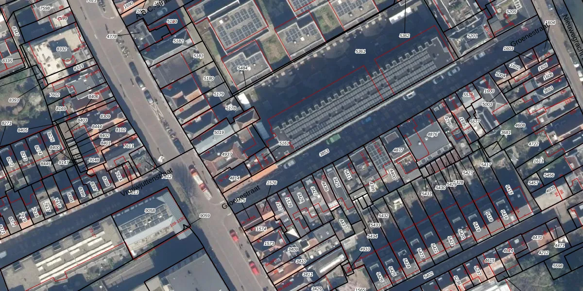 Het perceel waarop Groenestraat 84 staat heeft een oppervlakte van 1910 m². Dit is een zeer groot perceel. De perceeloppervlakte wordt geregistreerd door het Kadaster. Gedetailleerde informatie over de maten van dit perceel kunt u vinden in het rapport Kadastrale kaart met maatvoering van Groenestraat 84.