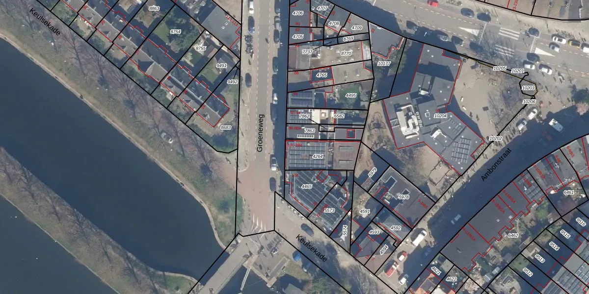 Groeneweg 102 is gelegen op kadastraal perceel CTR00C4264. Deze kadastrale aanduiding is uniek en wordt gebruikt door het Kadaster om eigendomsrechten en andere zakelijke rechten vast te leggen. Het perceel maakt onderdeel uit van de kadastrale gemeente Catharijne.