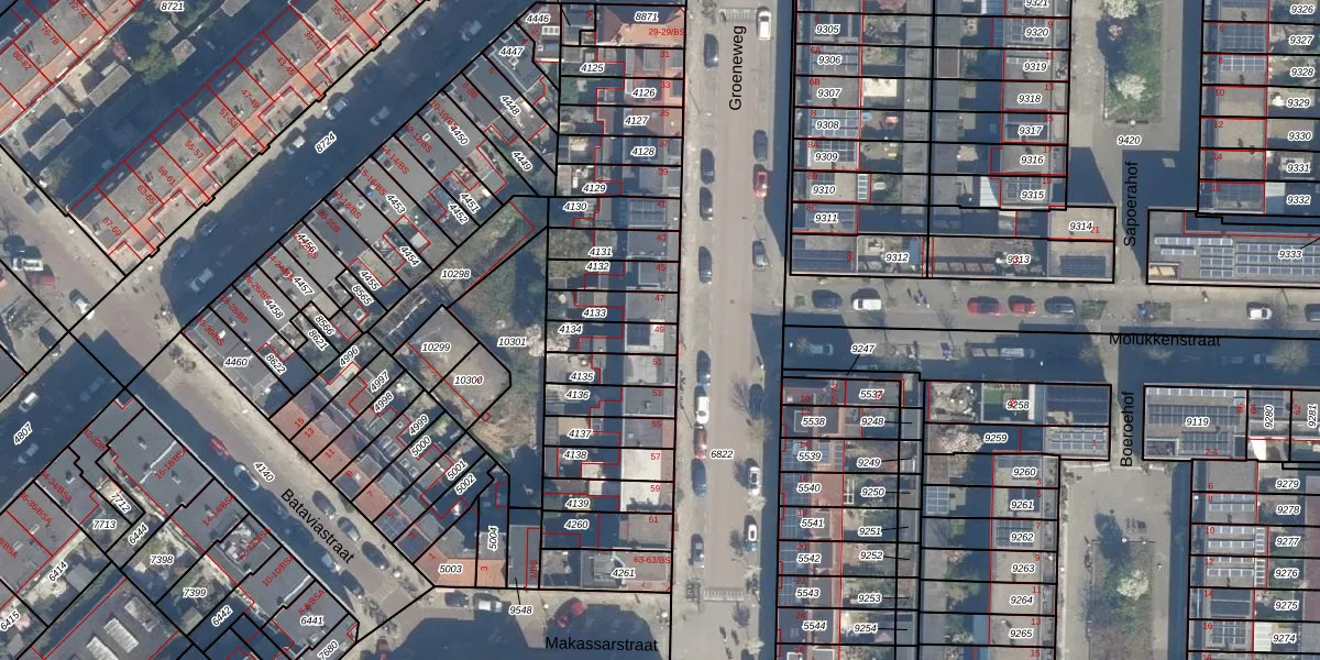Het perceel waarop Groeneweg 49 staat heeft een oppervlakte van 96 m². Dit is een klein perceel. De perceeloppervlakte wordt geregistreerd door het Kadaster. Gedetailleerde informatie over de maten van dit perceel kunt u vinden in het rapport Kadastrale kaart met maatvoering van Groeneweg 49.