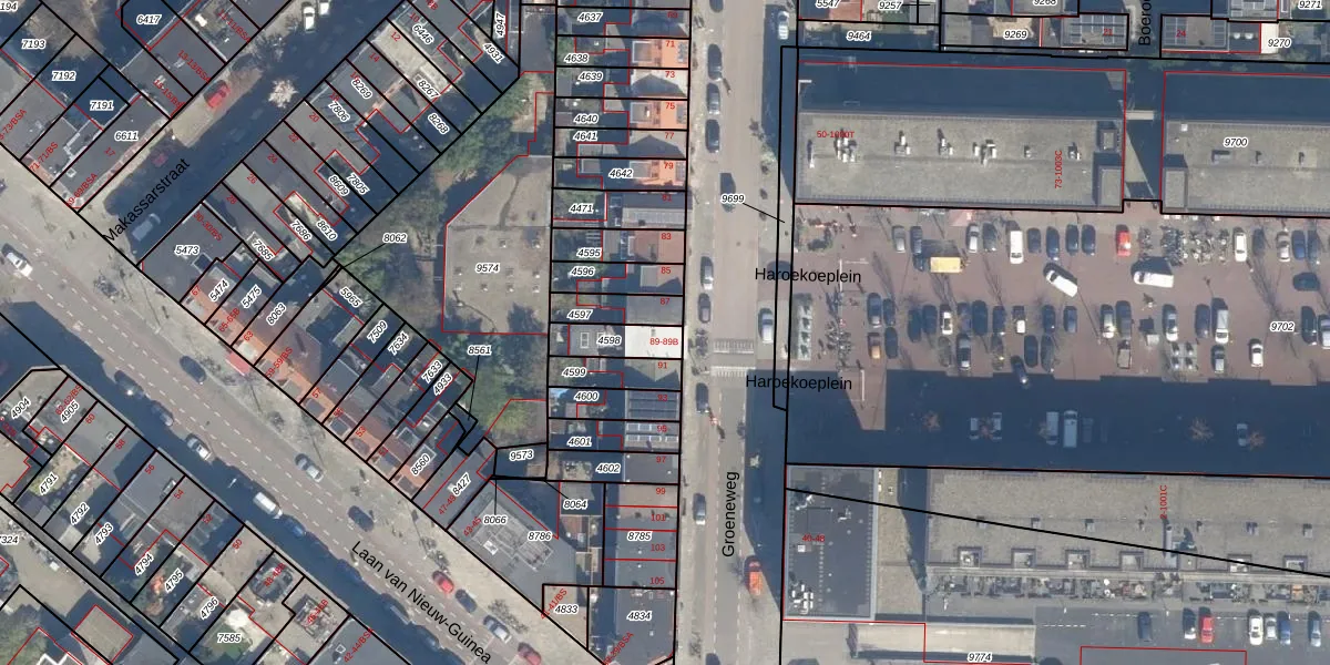 Het perceel waarop Groeneweg 89 staat heeft een oppervlakte van 96 m². Dit is een klein perceel. De perceeloppervlakte wordt geregistreerd door het Kadaster. Gedetailleerde informatie over de maten van dit perceel kunt u vinden in het rapport Kadastrale kaart met maatvoering van Groeneweg 89.