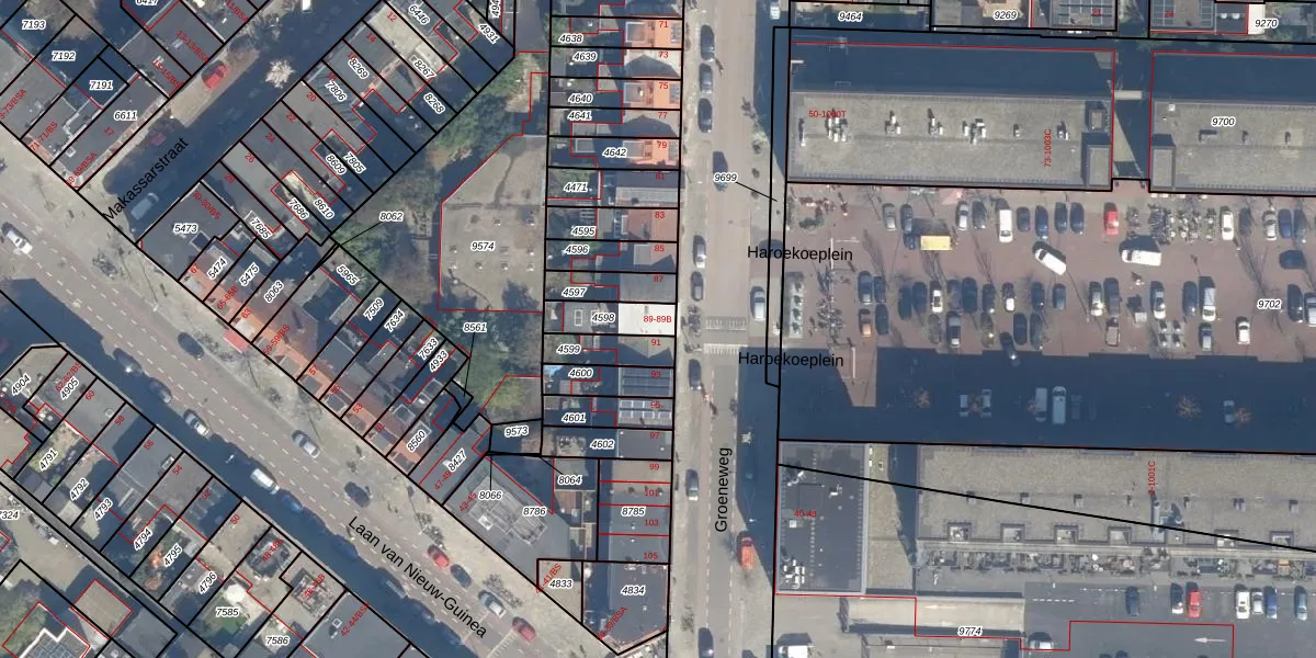 Het perceel waarop Groeneweg 89-B staat heeft een oppervlakte van 96 m². Dit is een klein perceel. De perceeloppervlakte wordt geregistreerd door het Kadaster. Gedetailleerde informatie over de maten van dit perceel kunt u vinden in het rapport Kadastrale kaart met maatvoering van Groeneweg 89-B.