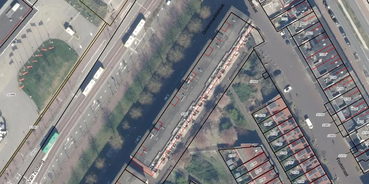 Het perceel waarop Groenmarktstraat 26 staat heeft een oppervlakte van 2200 m². Dit is een zeer groot perceel. De perceeloppervlakte wordt geregistreerd door het Kadaster. Gedetailleerde informatie over de maten van dit perceel kunt u vinden in het rapport Kadastrale kaart met maatvoering van Groenmarktstraat 26.