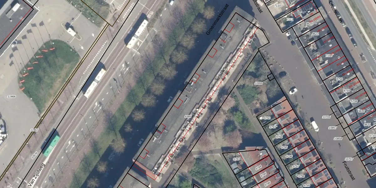 Het perceel waarop Groenmarktstraat 27 staat heeft een oppervlakte van 2200 m². Dit is een zeer groot perceel. De perceeloppervlakte wordt geregistreerd door het Kadaster. Gedetailleerde informatie over de maten van dit perceel kunt u vinden in het rapport Kadastrale kaart met maatvoering van Groenmarktstraat 27.