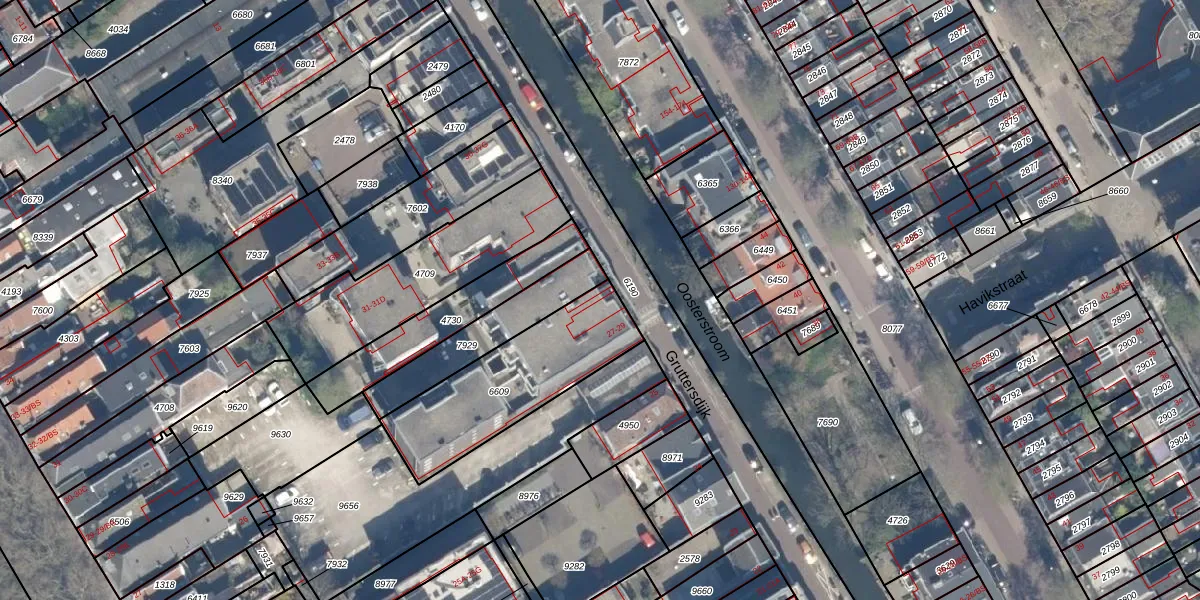 Het perceel waarop Gruttersdijk 28-K staat heeft een oppervlakte van 545 m². Dit is een groot perceel. De perceeloppervlakte wordt geregistreerd door het Kadaster. Gedetailleerde informatie over de maten van dit perceel kunt u vinden in het rapport Kadastrale kaart met maatvoering van Gruttersdijk 28-K.