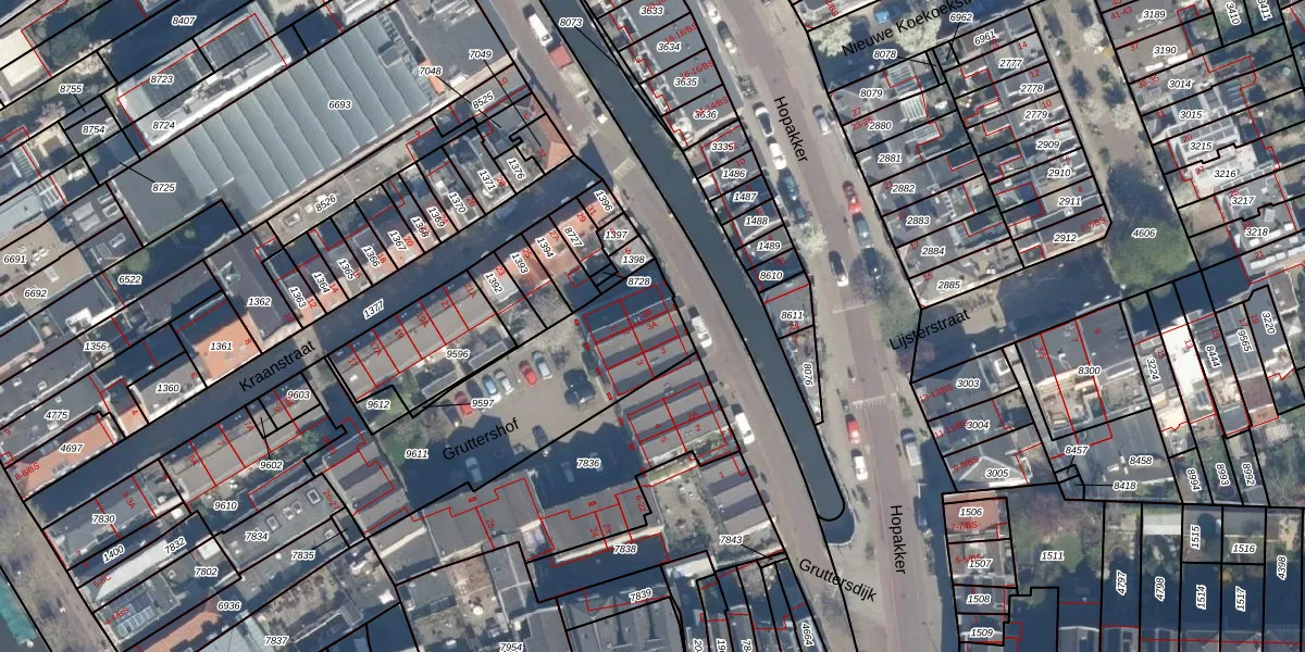 Het perceel waarop Gruttersdijk 3-A staat heeft een oppervlakte van 951 m². Dit is een groot perceel. De perceeloppervlakte wordt geregistreerd door het Kadaster. Gedetailleerde informatie over de maten van dit perceel kunt u vinden in het rapport Kadastrale kaart met maatvoering van Gruttersdijk 3-A.
