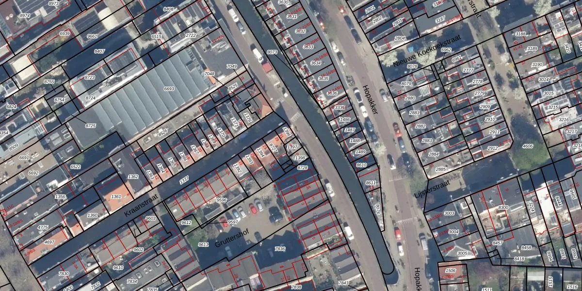 Het perceel waarop Gruttersdijk 6 staat heeft een oppervlakte van 24 m². Dit is een klein perceel. De perceeloppervlakte wordt geregistreerd door het Kadaster. Gedetailleerde informatie over de maten van dit perceel kunt u vinden in het rapport Kadastrale kaart met maatvoering van Gruttersdijk 6.