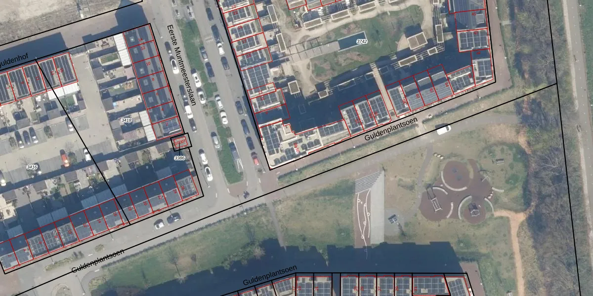 Het perceel waarop Guldenplantsoen 34 staat heeft een oppervlakte van 4990 m². Dit is een zeer groot perceel. De perceeloppervlakte wordt geregistreerd door het Kadaster. Gedetailleerde informatie over de maten van dit perceel kunt u vinden in het rapport Kadastrale kaart met maatvoering van Guldenplantsoen 34.