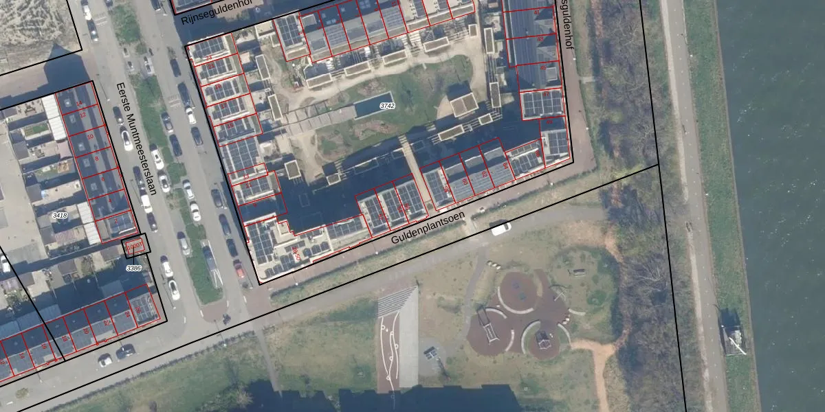 Guldenplantsoen 56 is gelegen op kadastraal perceel CTR00F3742. Deze kadastrale aanduiding is uniek en wordt gebruikt door het Kadaster om eigendomsrechten en andere zakelijke rechten vast te leggen. Het perceel maakt onderdeel uit van de kadastrale gemeente Catharijne.
