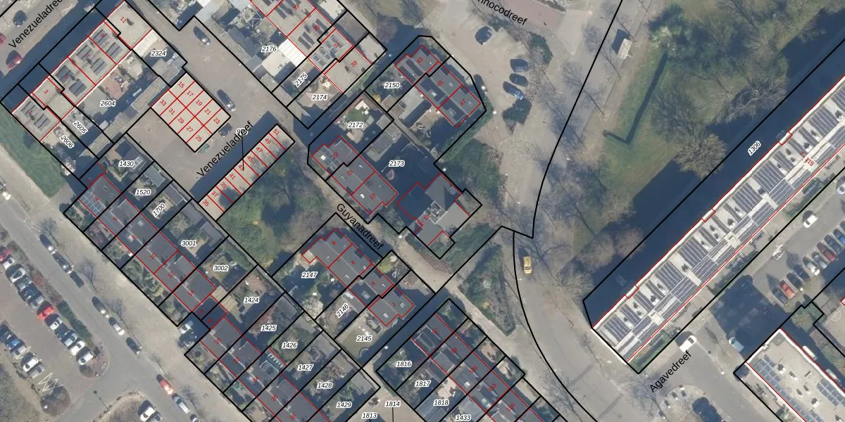 Guyanadreef 13 is gelegen op kadastraal perceel UTT00F2173. Deze kadastrale aanduiding is uniek en wordt gebruikt door het Kadaster om eigendomsrechten en andere zakelijke rechten vast te leggen. Het perceel maakt onderdeel uit van de kadastrale gemeente Utrecht.