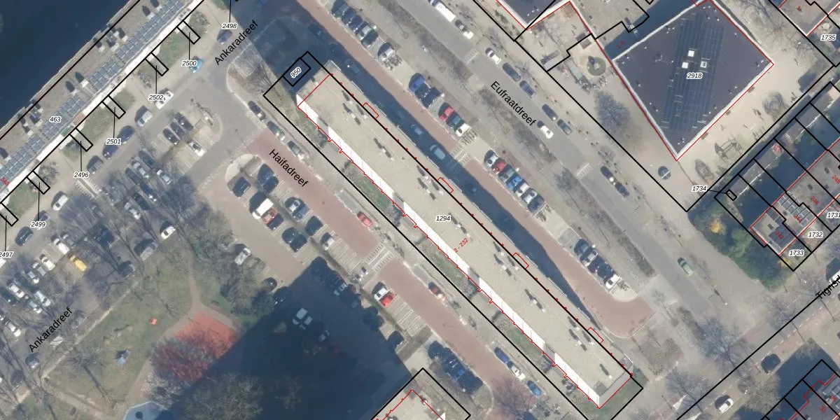Het perceel waarop Haifadreef 90 staat heeft een oppervlakte van 1655 m². Dit is een zeer groot perceel. De perceeloppervlakte wordt geregistreerd door het Kadaster. Gedetailleerde informatie over de maten van dit perceel kunt u vinden in het rapport Kadastrale kaart met maatvoering van Haifadreef 90.