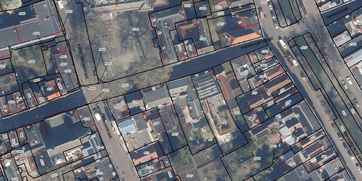 Het perceel waarop Hamburgerstraat 21-D staat heeft een oppervlakte van 610 m². Dit is een groot perceel. De perceeloppervlakte wordt geregistreerd door het Kadaster. Gedetailleerde informatie over de maten van dit perceel kunt u vinden in het rapport Kadastrale kaart met maatvoering van Hamburgerstraat 21-D.