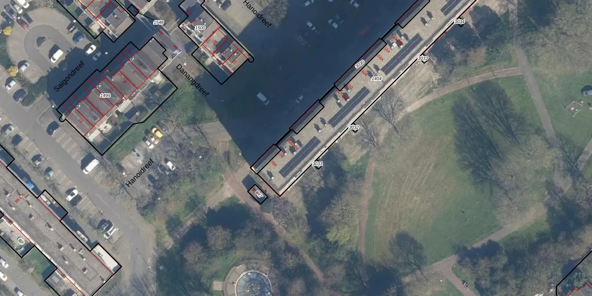 Het perceel waarop Hanoidreef 310 staat heeft een oppervlakte van 1166 m². Dit is een zeer groot perceel. De perceeloppervlakte wordt geregistreerd door het Kadaster. Gedetailleerde informatie over de maten van dit perceel kunt u vinden in het rapport Kadastrale kaart met maatvoering van Hanoidreef 310.