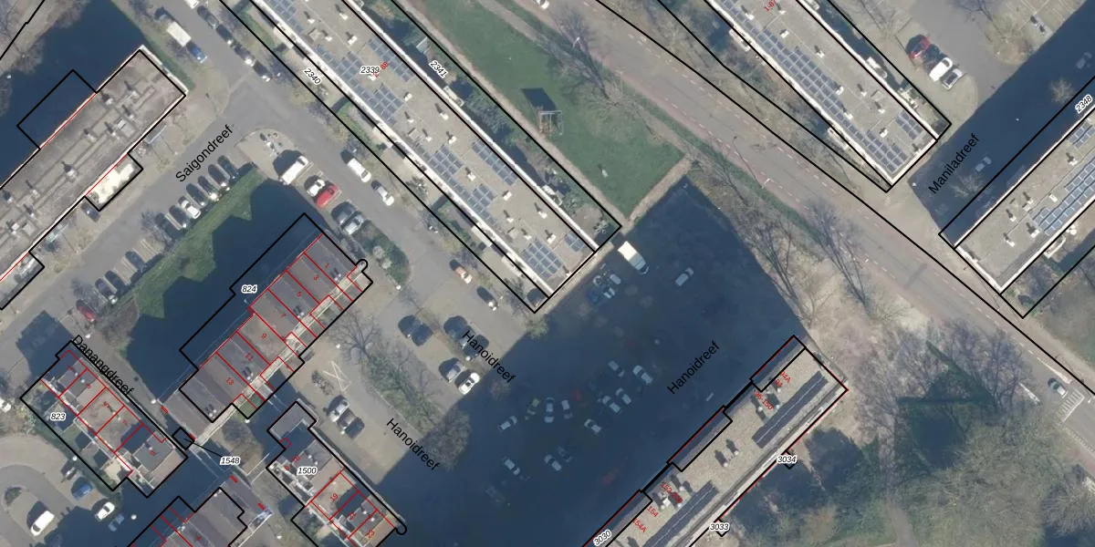 Het perceel waarop Hanoidreef 88 staat heeft een oppervlakte van 1220 m². Dit is een zeer groot perceel. De perceeloppervlakte wordt geregistreerd door het Kadaster. Gedetailleerde informatie over de maten van dit perceel kunt u vinden in het rapport Kadastrale kaart met maatvoering van Hanoidreef 88.