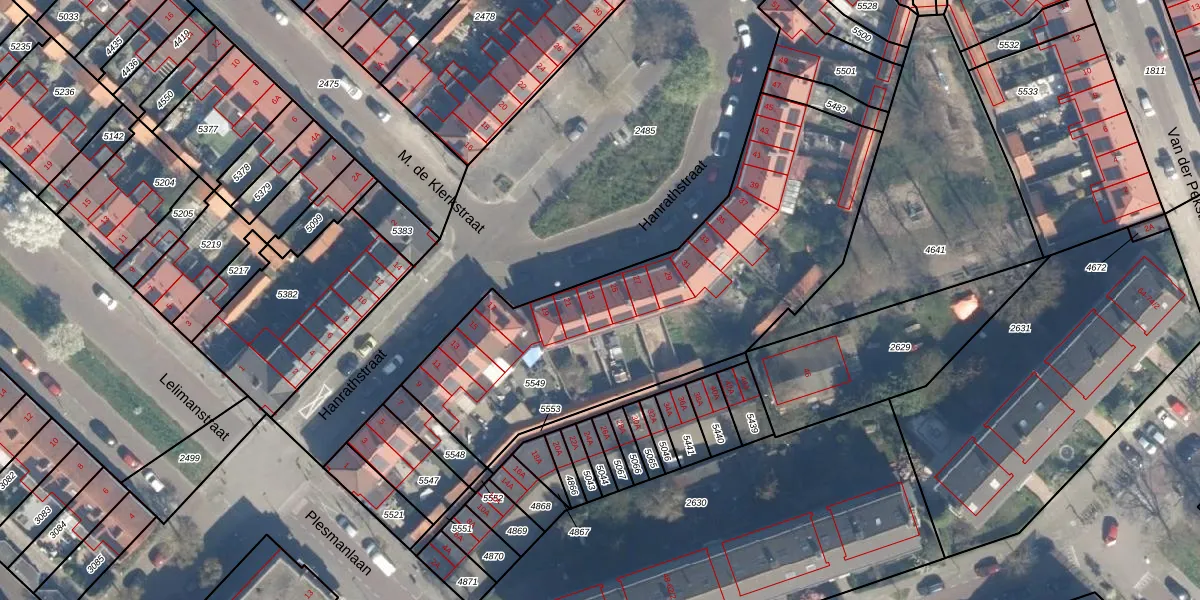 Het perceel waarop Hanrathstraat 23 staat heeft een oppervlakte van 1834 m². Dit is een zeer groot perceel. De perceeloppervlakte wordt geregistreerd door het Kadaster. Gedetailleerde informatie over de maten van dit perceel kunt u vinden in het rapport Kadastrale kaart met maatvoering van Hanrathstraat 23.