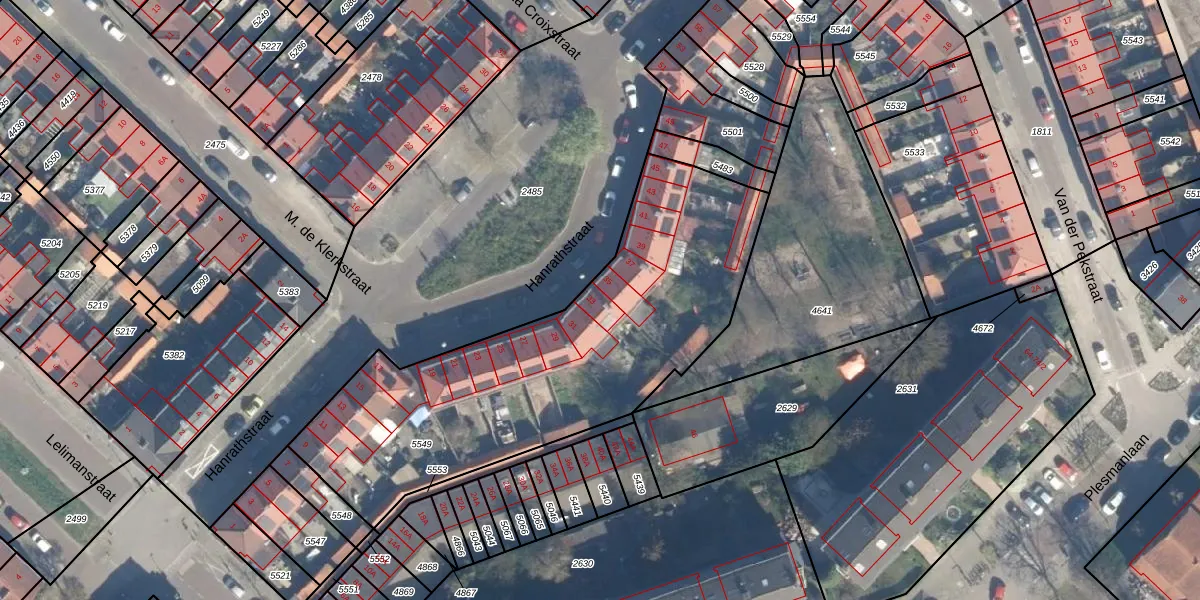 Het perceel waarop Hanrathstraat 33 staat heeft een oppervlakte van 1834 m². Dit is een zeer groot perceel. De perceeloppervlakte wordt geregistreerd door het Kadaster. Gedetailleerde informatie over de maten van dit perceel kunt u vinden in het rapport Kadastrale kaart met maatvoering van Hanrathstraat 33.