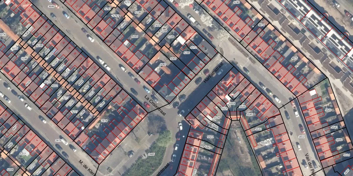 Het perceel waarop Hanrathstraat 34 staat heeft een oppervlakte van 455 m². Dit is een groot perceel. De perceeloppervlakte wordt geregistreerd door het Kadaster. Gedetailleerde informatie over de maten van dit perceel kunt u vinden in het rapport Kadastrale kaart met maatvoering van Hanrathstraat 34.