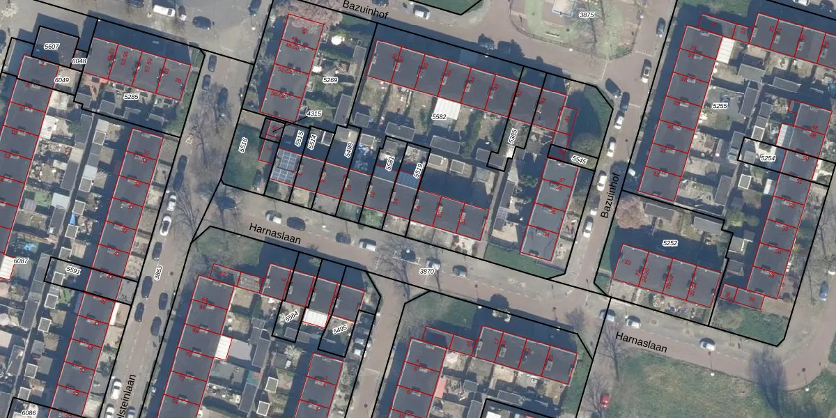 Harnaslaan 16 is gelegen op kadastraal perceel UTT00P5582. Deze kadastrale aanduiding is uniek en wordt gebruikt door het Kadaster om eigendomsrechten en andere zakelijke rechten vast te leggen. Het perceel maakt onderdeel uit van de kadastrale gemeente Utrecht.