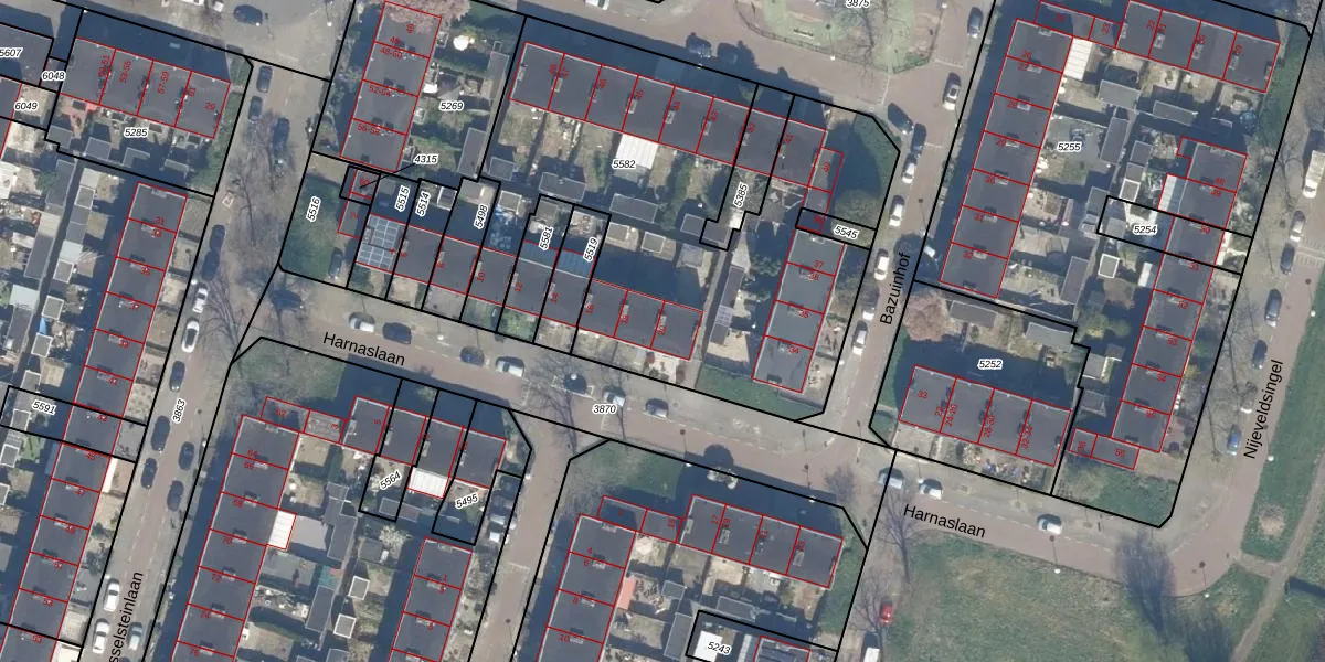 Het perceel waarop Harnaslaan 20 staat heeft een oppervlakte van 2329 m². Dit is een zeer groot perceel. De perceeloppervlakte wordt geregistreerd door het Kadaster. Gedetailleerde informatie over de maten van dit perceel kunt u vinden in het rapport Kadastrale kaart met maatvoering van Harnaslaan 20.