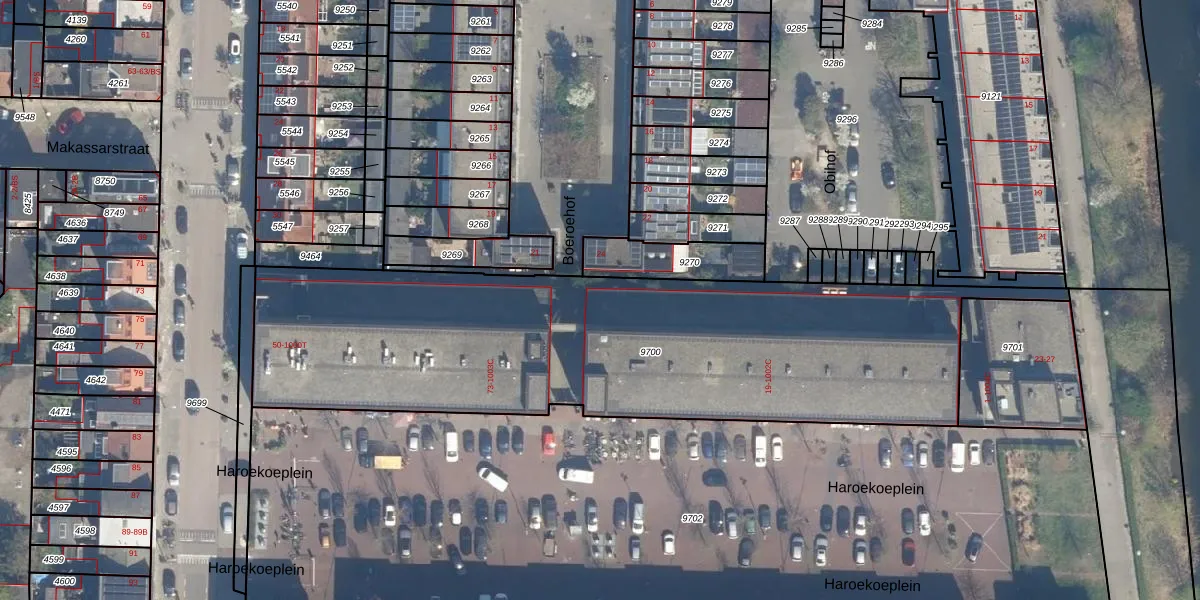 Het perceel waarop Haroekoeplein 1002-C staat heeft een oppervlakte van 2760 m². Dit is een zeer groot perceel. De perceeloppervlakte wordt geregistreerd door het Kadaster. Gedetailleerde informatie over de maten van dit perceel kunt u vinden in het rapport Kadastrale kaart met maatvoering van Haroekoeplein 1002-C.