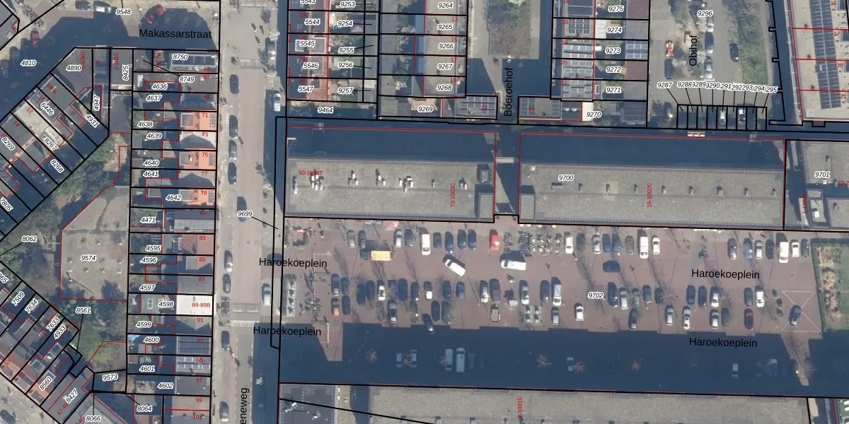 Haroekoeplein 105 is gelegen op kadastraal perceel CTR00C9700. Deze kadastrale aanduiding is uniek en wordt gebruikt door het Kadaster om eigendomsrechten en andere zakelijke rechten vast te leggen. Het perceel maakt onderdeel uit van de kadastrale gemeente Catharijne.